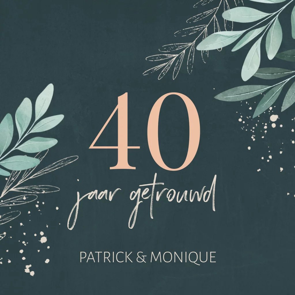 Moderne uitnodiging 40 jaar getrouwd met botanische elementen en spetters. (23914)