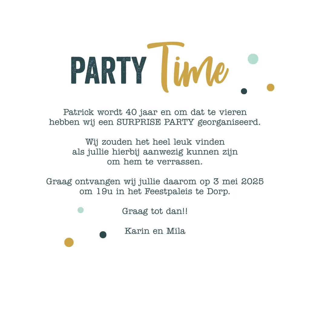Uitnodiging 40e verjaardag man met bier en confetti foto binnenkant