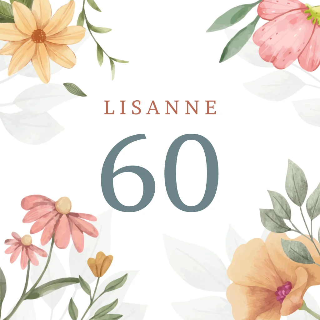 60 jaar uitnodiging voor een feestje met kleurrijke getekende bloemen en botanische elementen. (30242)