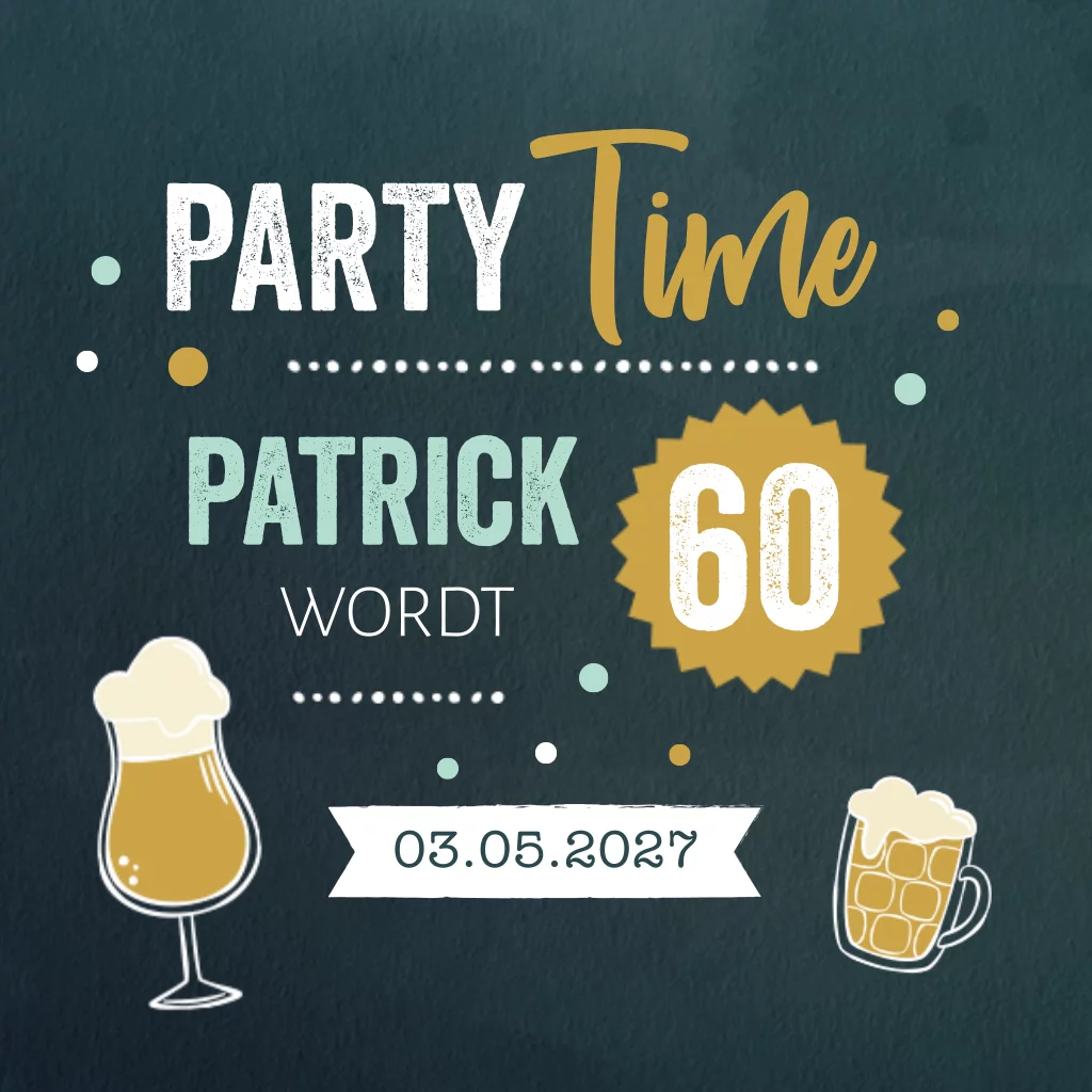 60 jaar uitnodiging verjaardag met bier op een donkere waterverf achtergrond. (23225)