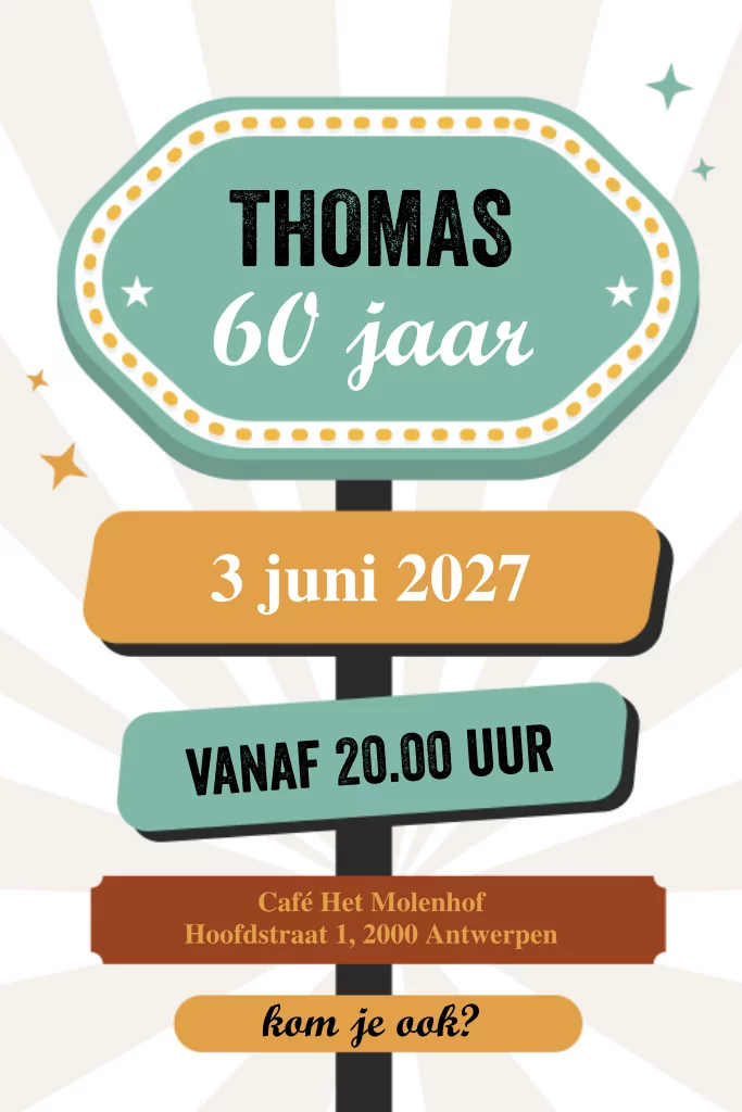 Uitnodiging verjaardagskaart 60 jaar met bordjes