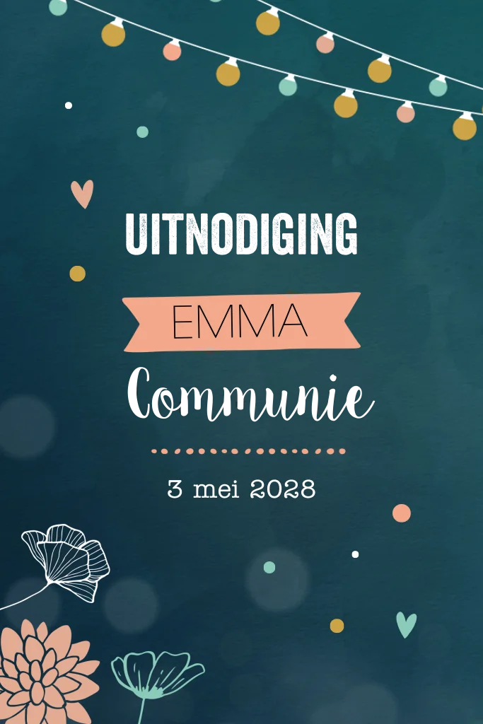 Uitnodiging eerste communie met feestlampjes