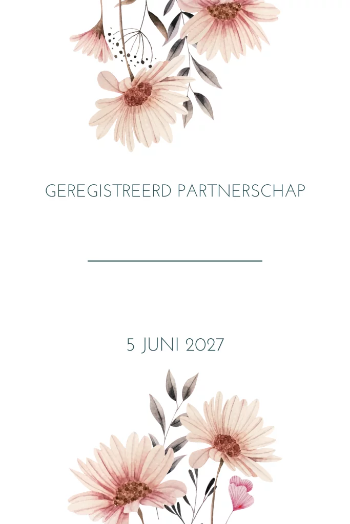 Uitnodiging geregistreerd partnerschap met waterverf bloemen