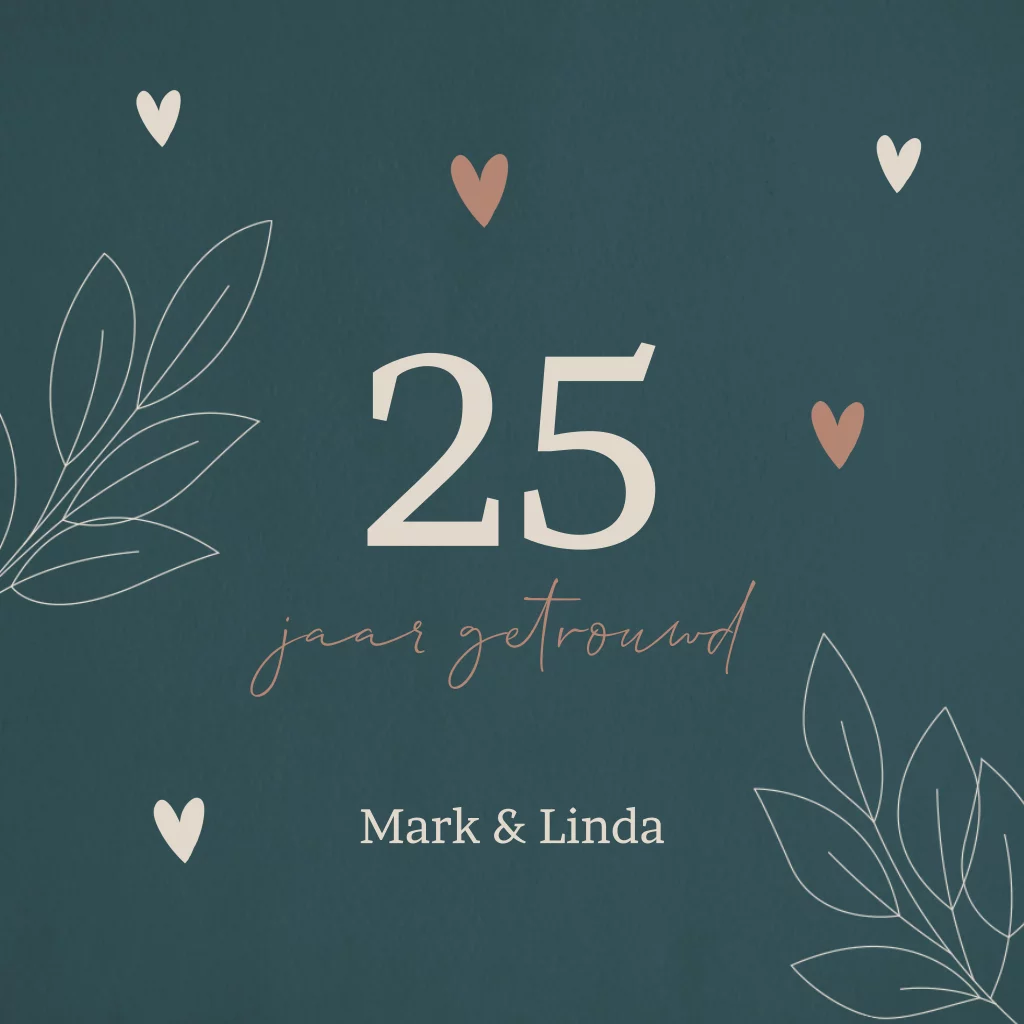 Jubileum uitnodiging 25 jaar getrouwd met hartjes en takjes