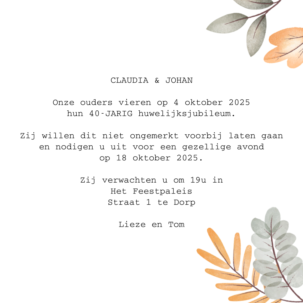 Uitnodiging jubileum 25 jaar getrouwd waterverf bloemen