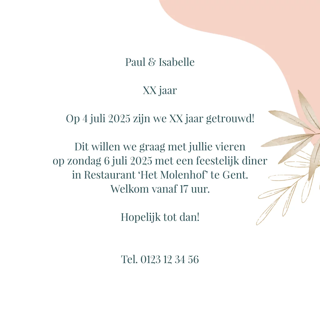 Uitnodiging jubileum 40 jaar getrouwd botanisch en spetters