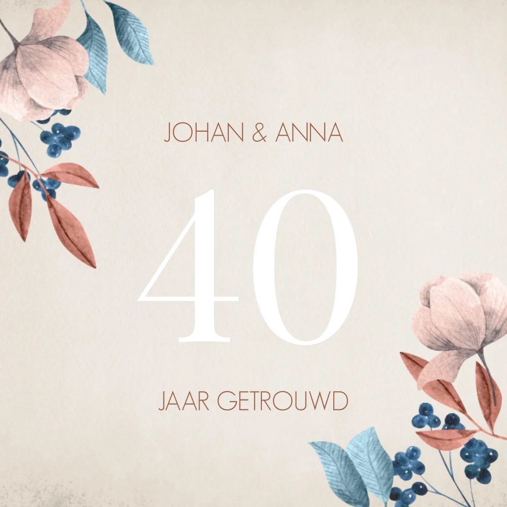 Uitnodiging jubileum 40 jaar getrouwd met getekende bloemen