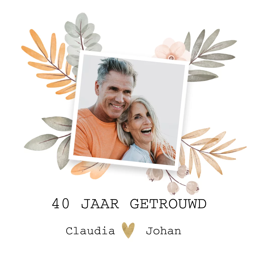 Frisse 40 jaar getrouwd uitnodigingskaart met getekende bloemen en plaats voor een mooie foto. (23259)