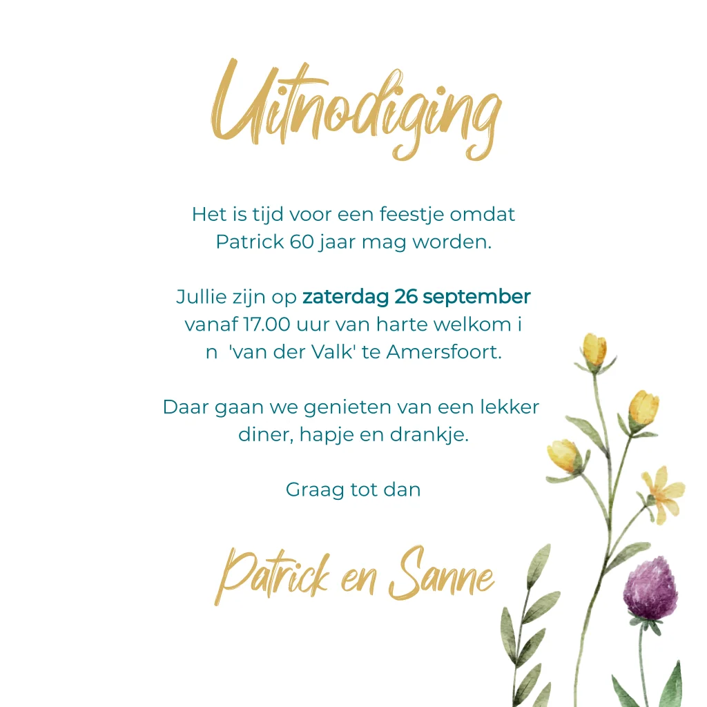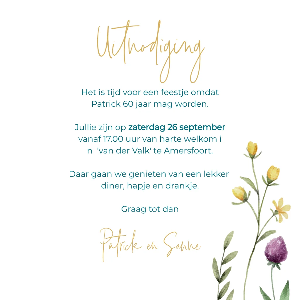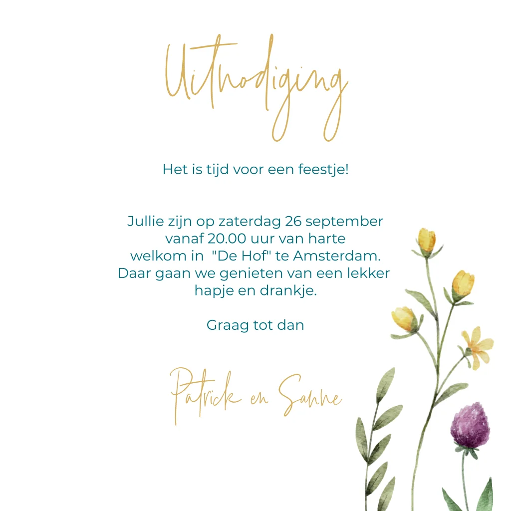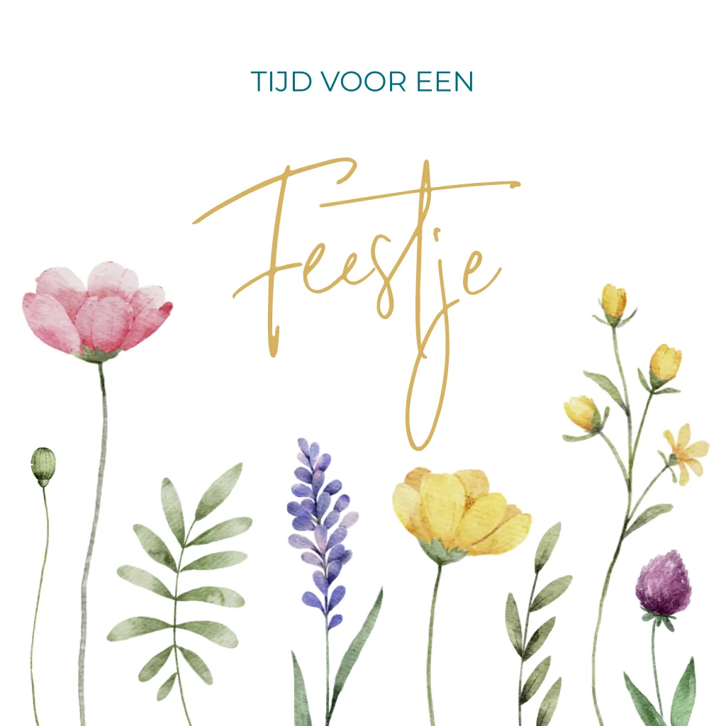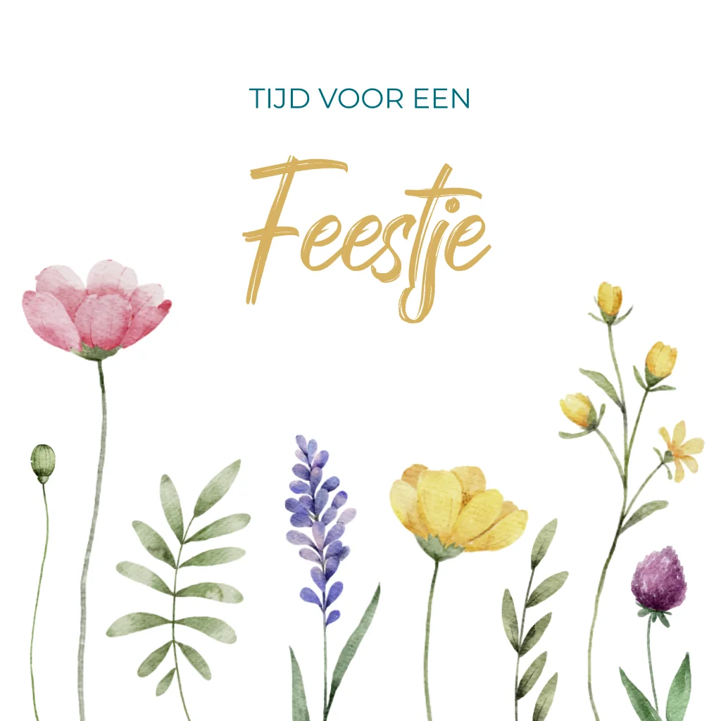 Feestje uitnodigingskaart voor een verjaardag of elk ander feestje met kleurrijk getekende bloemen. (24370)