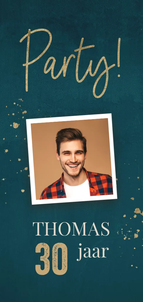 Uitnodiging man 30 jaar groen met foto en spetters