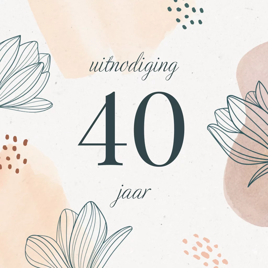 Stijlvolle uitnodiging verjaardag 40 jaar met verschillende hippe versieringen en lijntekeningen van bloemen. (24090)