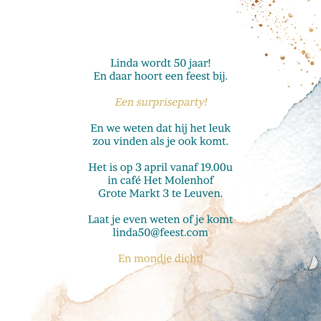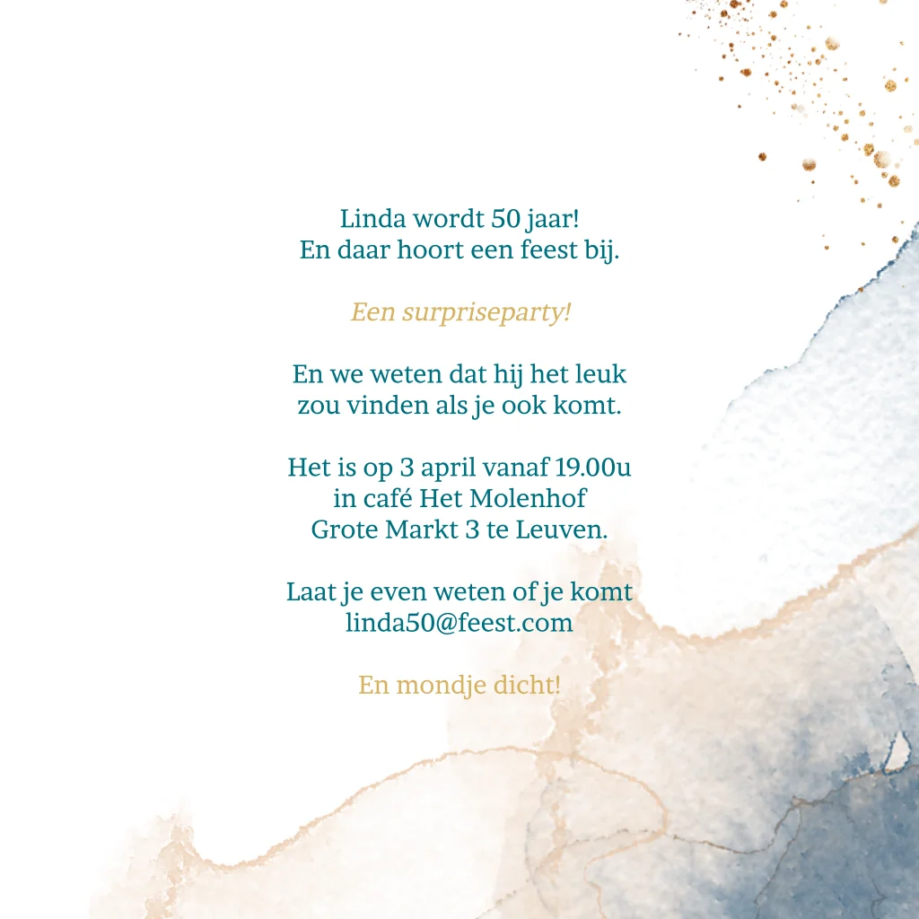 Uitnodiging voor een 50e verjaardag modern met waterverf
