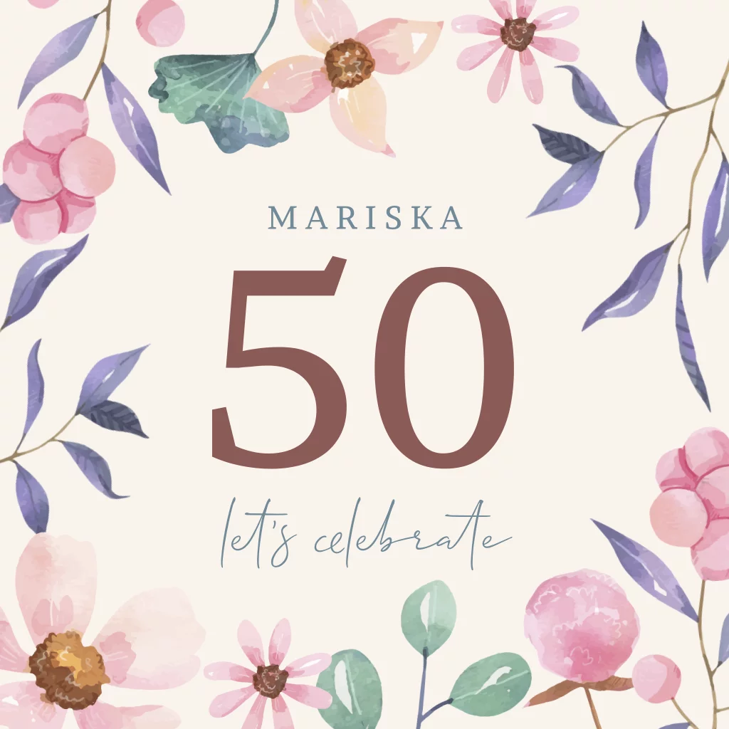 Uitnodiging voor een 50ste verjaardag met bloemen