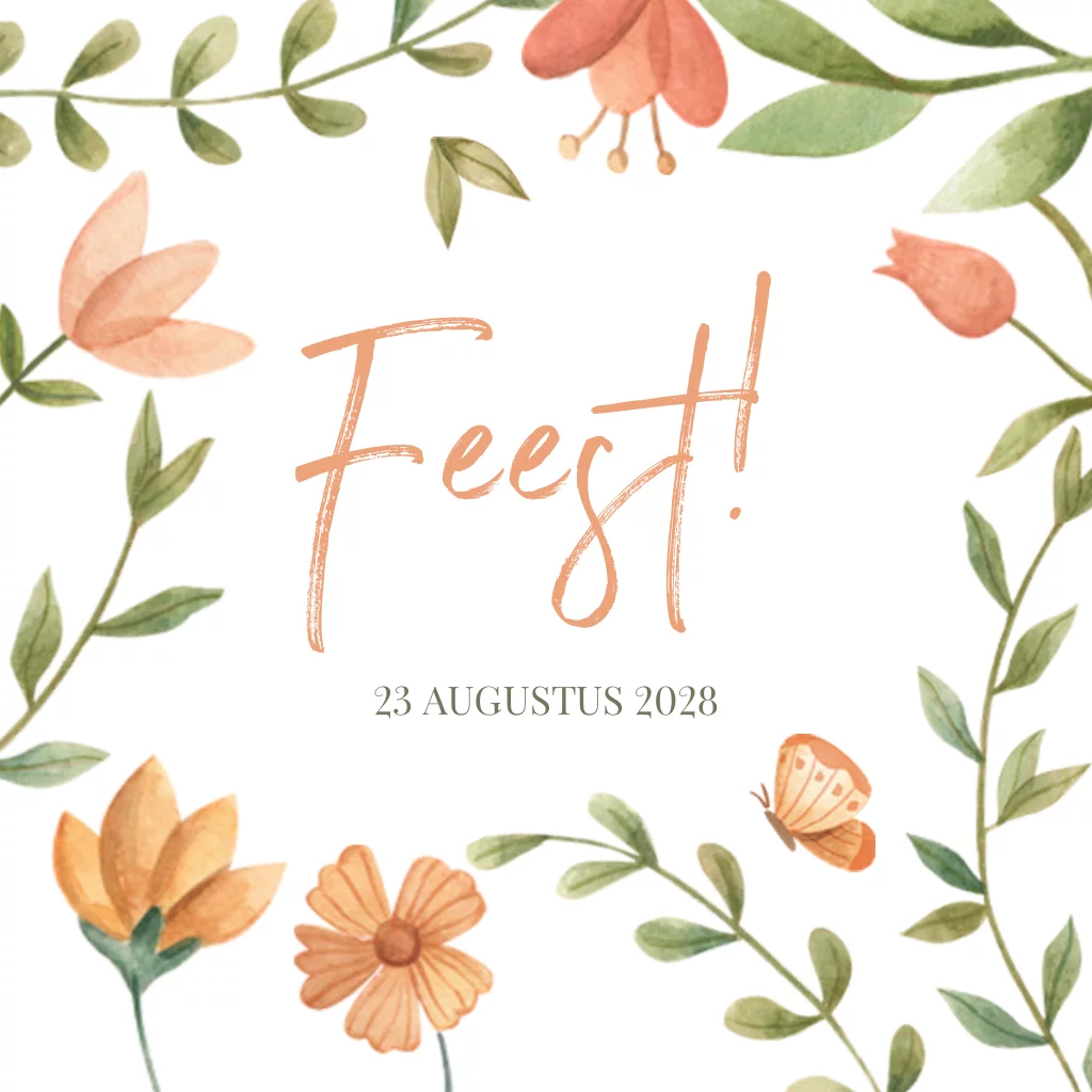 Uitnodiging feestje of verjaardag met bloemen en takjes