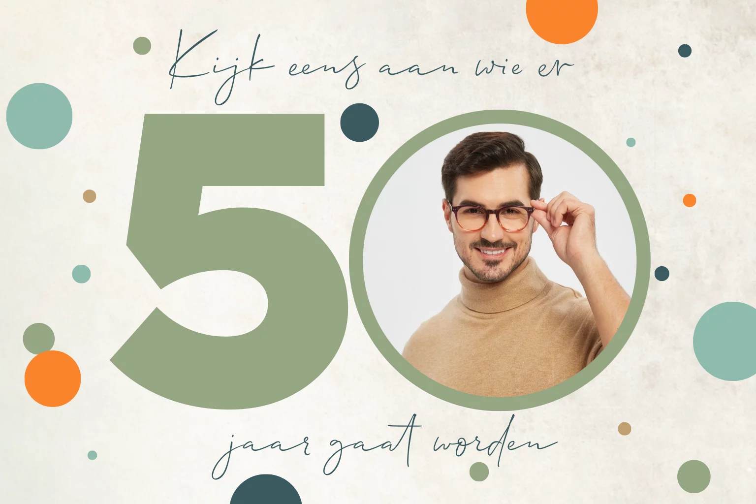 Uitnodiging voor een verjaardag voor een man 50 jaar met een foto feestje trendy met kleurrijke confetti en ruimte voor een eigen foto. (24374) (Dit kaartje heeft nu ronde hoeken a € 0,30 per kaartje)