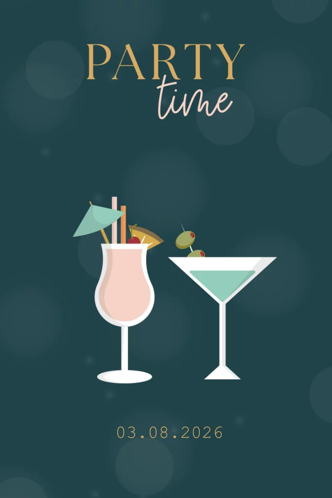 Hippe uitnodiging met getekende cocktail glazen voor een cocktail party of cocktail feestje op een leuke groene achtergrond. (24164)