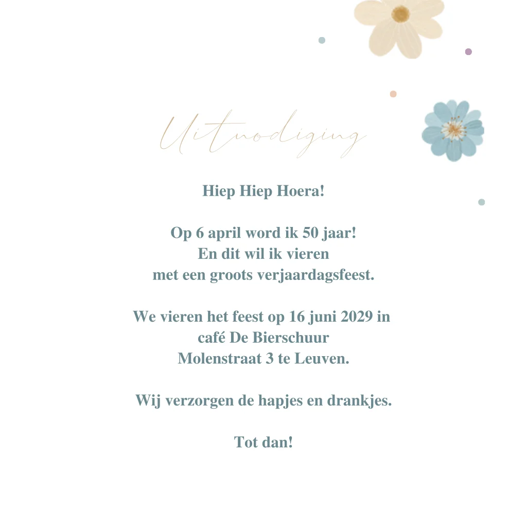 Uitnodiging voor een feestje of verjaardag met bloemen