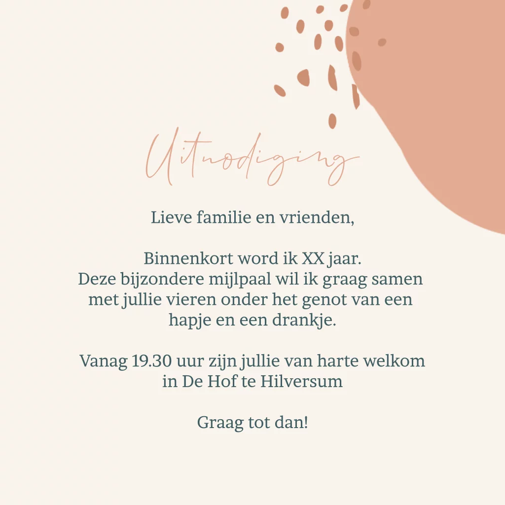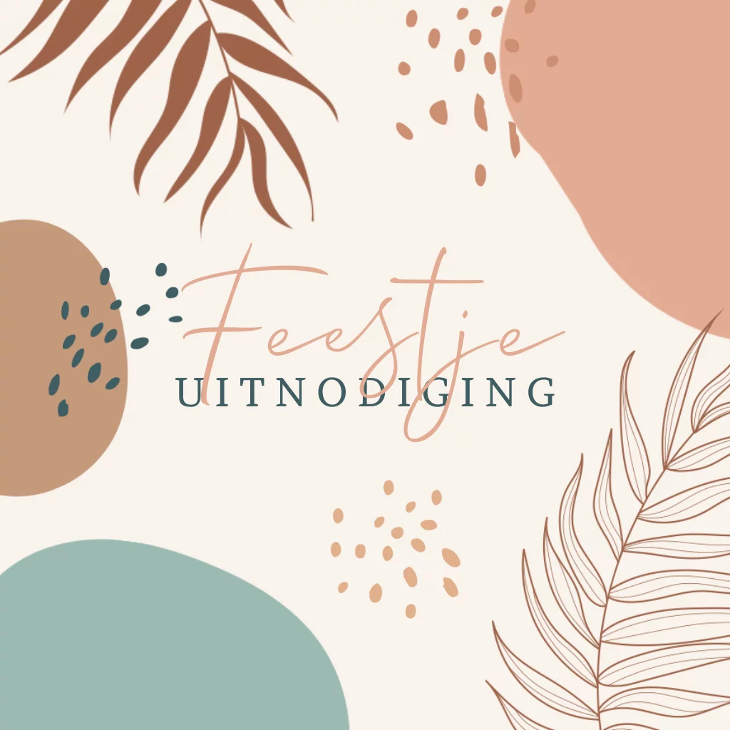 Uitnodiging verjaardag of feestje met getekende abstracte en botanische elementen in natuurlijke kleuren. (24377)