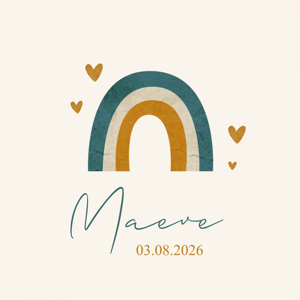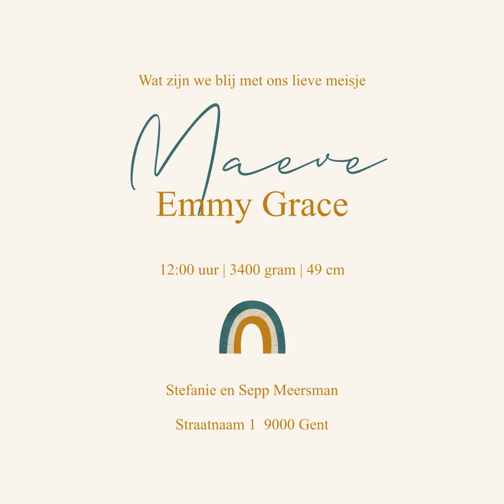 Hip geboortekaartje met regenboog voor jongen of meisje