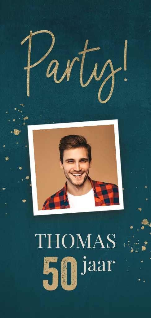 Uitnodiging 50 jaar verjaardag man groen met foto en spetters