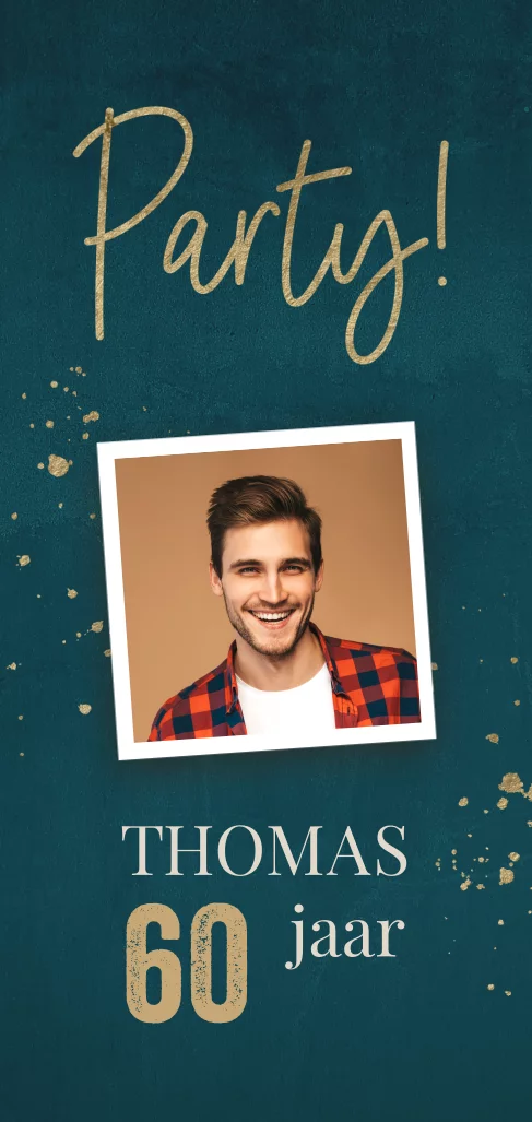 Uitnodiging 60 jaar verjaardag man groen met foto en spetters
