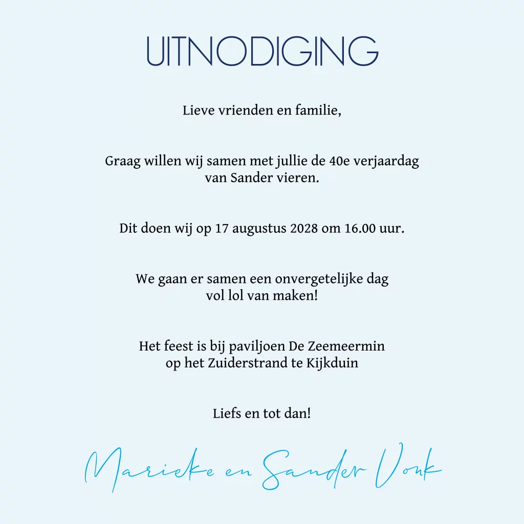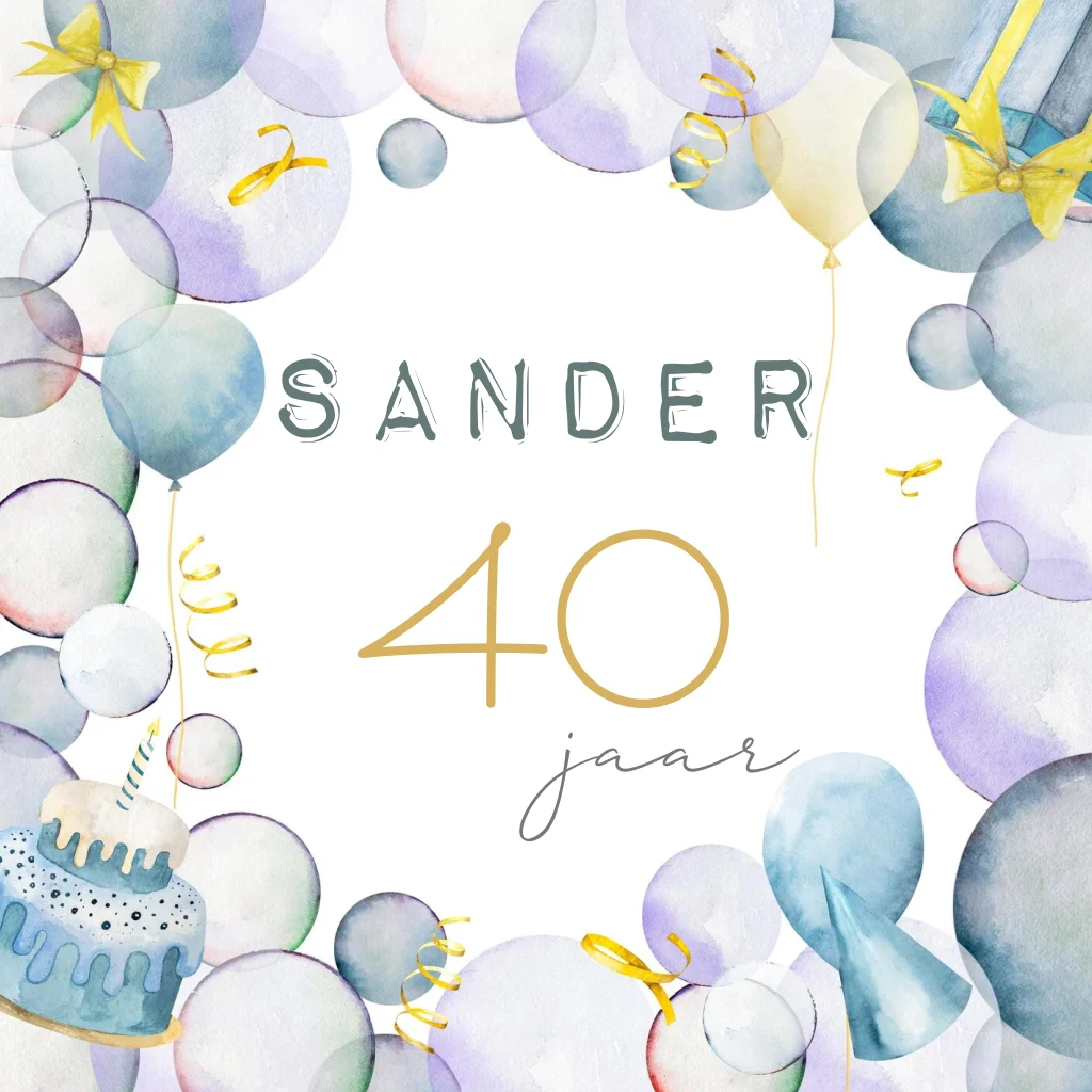 Uitnodiging 40e verjaardag met ballonnen en taart