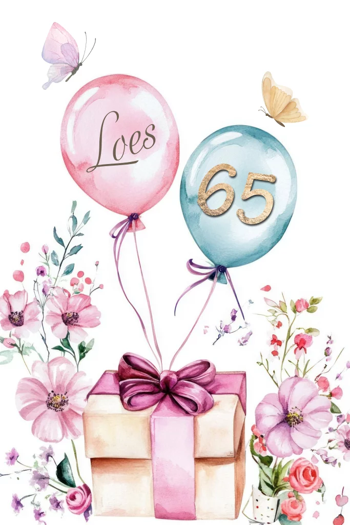 Uitnodiging 65e verjaardag vrouw roze bloemen en ballonnen