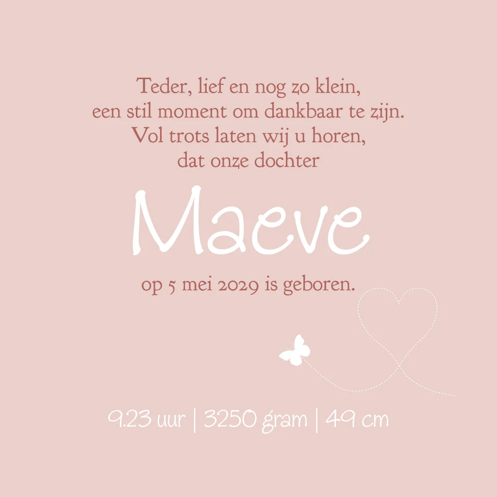 Lief meisjes geboortekaartje met baby en hart van bloemen