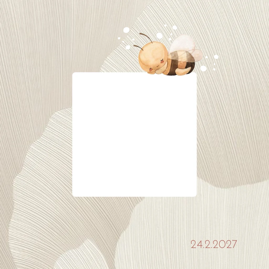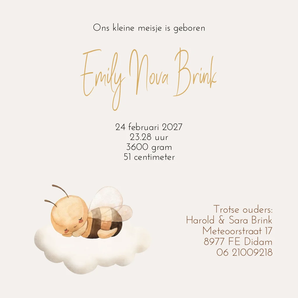 Geboortekaartje voor een meisje met een slapend bijtje en aardetinten