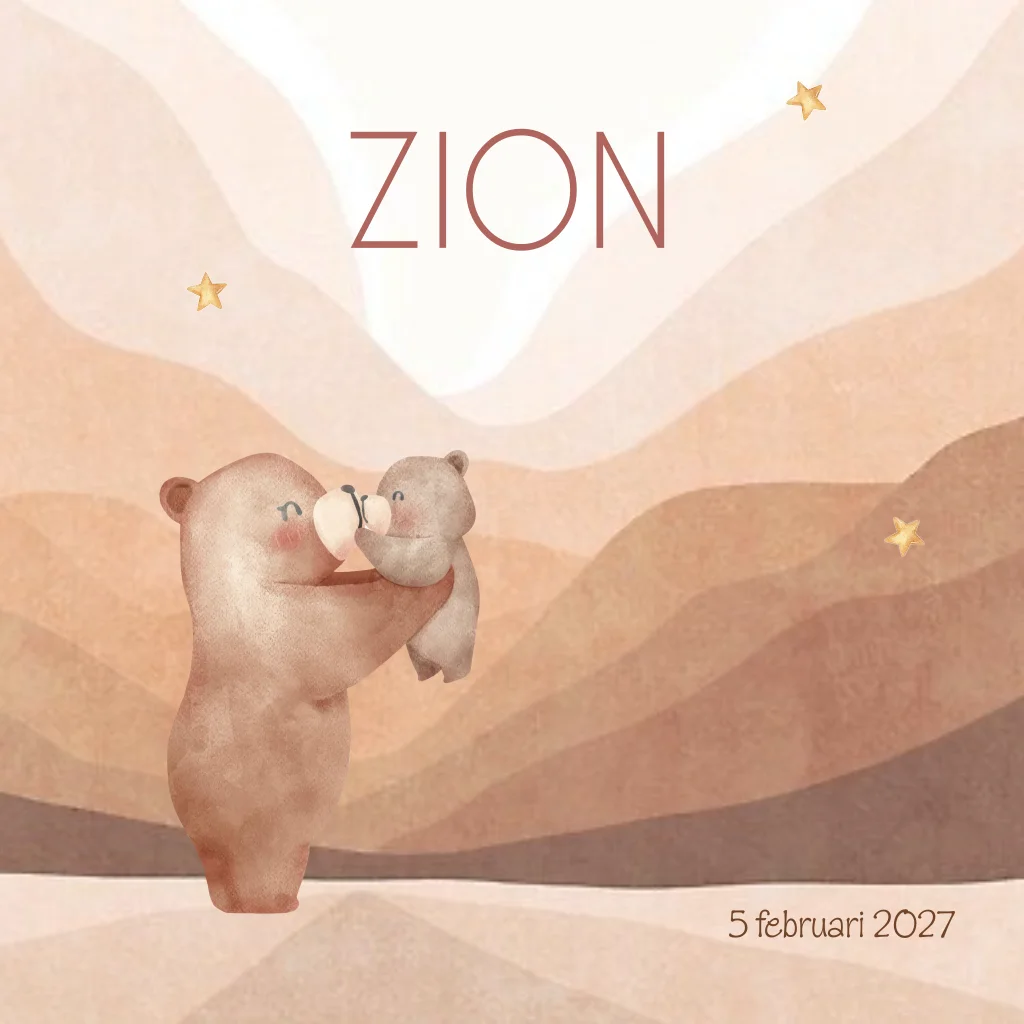 Geboortekaartje voor een jongen of meisje met warme aardetinten en 2 lieve beertjes. Mama beer en baby beertje. (24495)