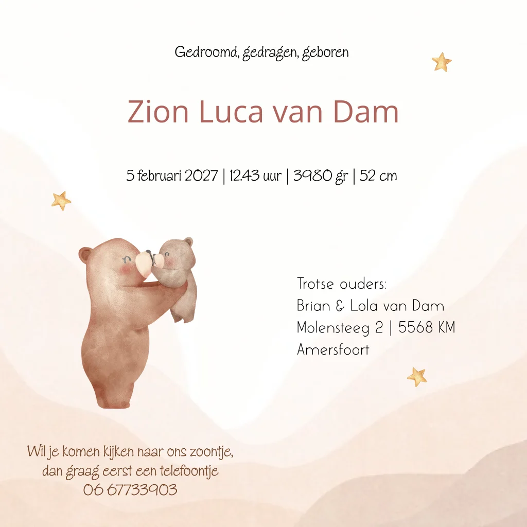 Geboortekaartje neutraal met aardetinten en lieve beertjes