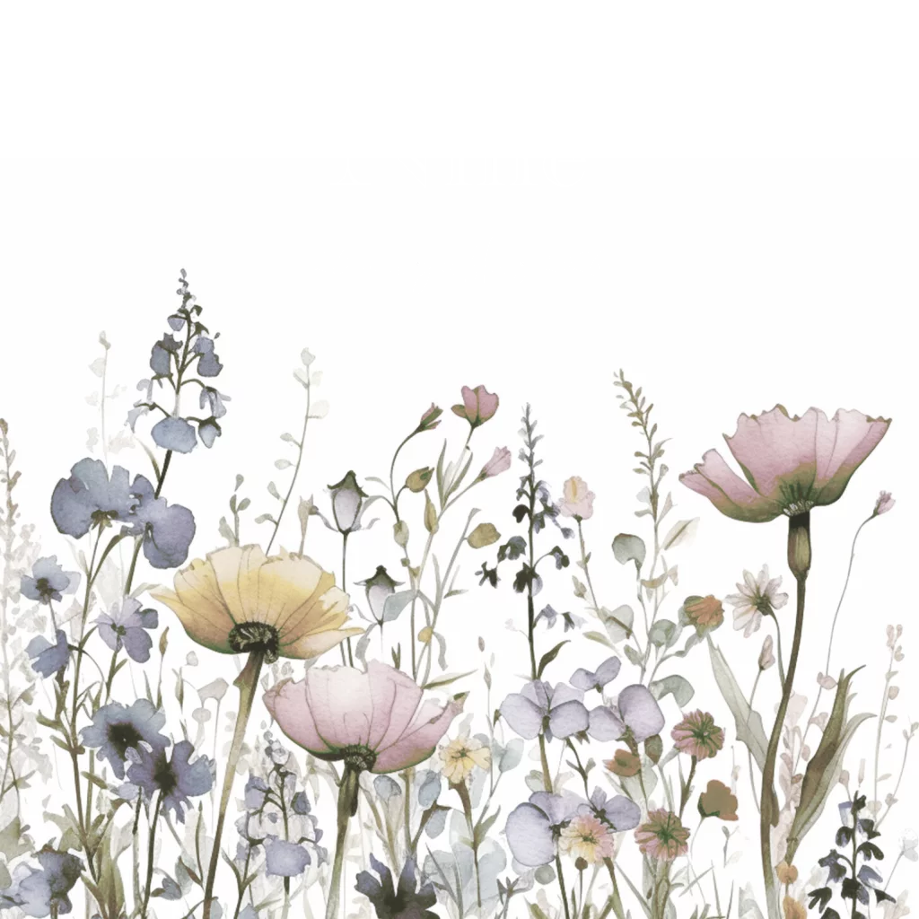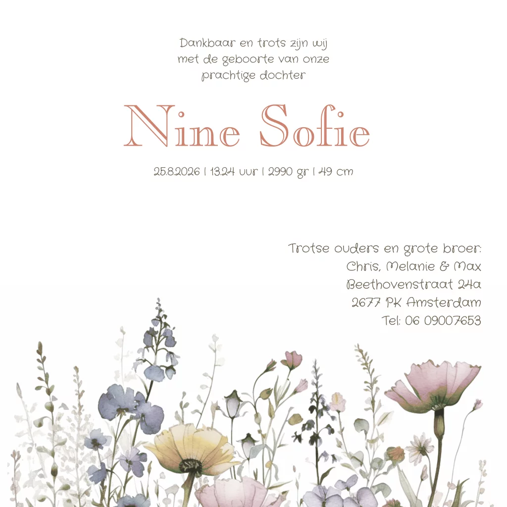 Geboortekaartje meisje met wilde bloemen en foliedruk. (23834)