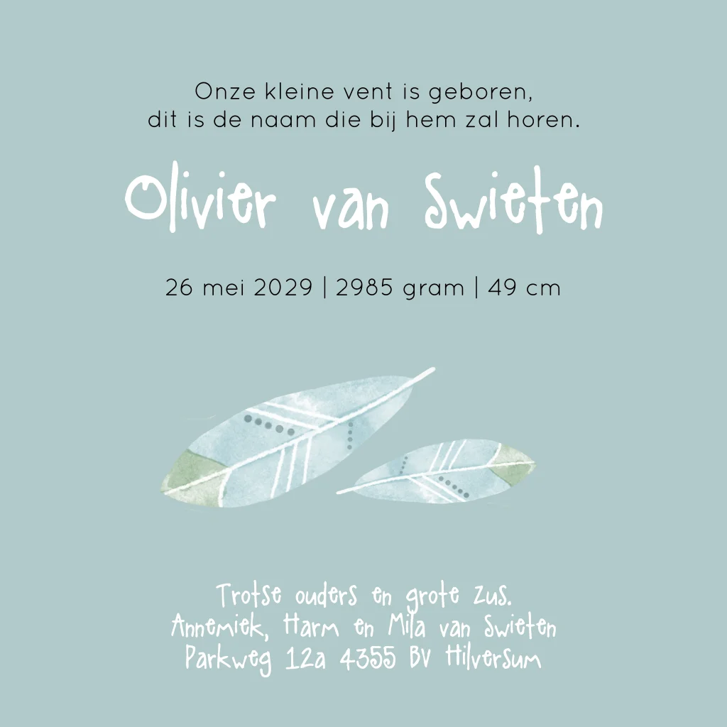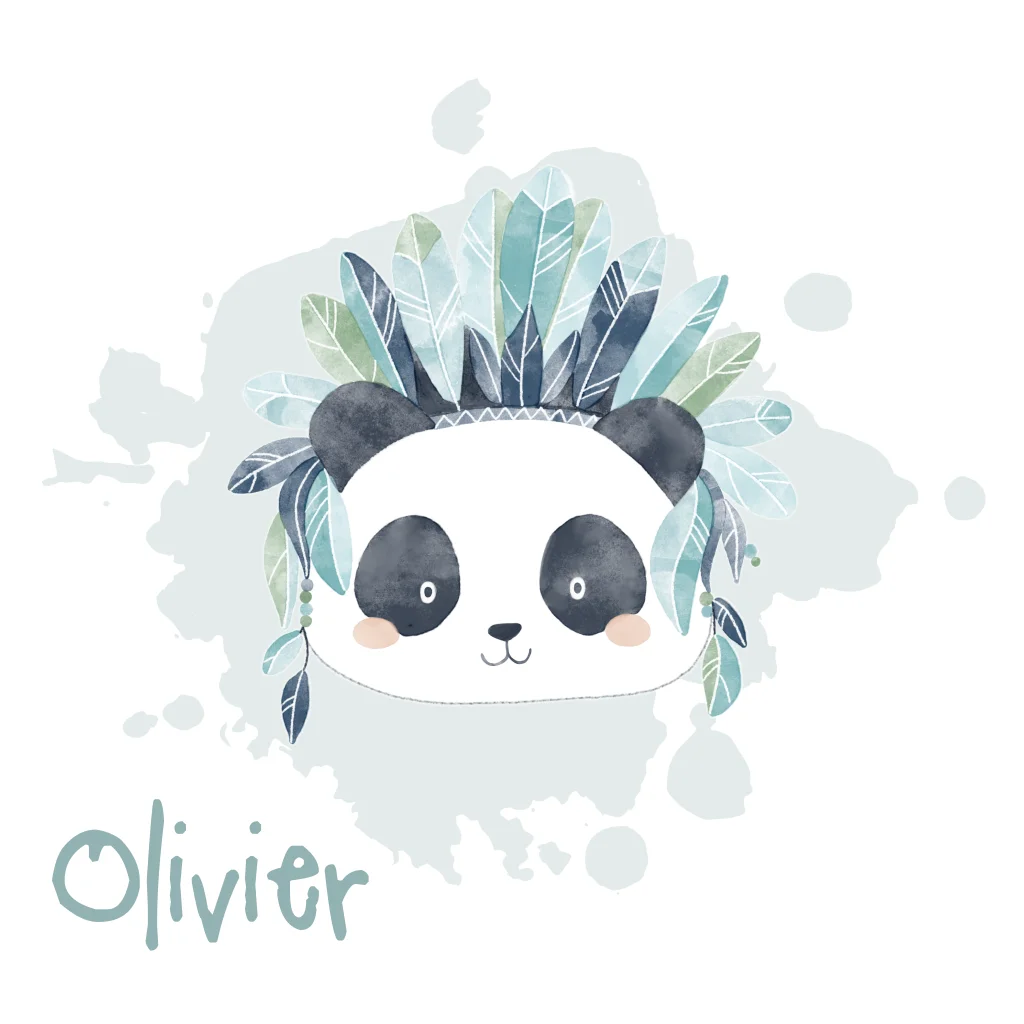 Geboortekaartje voor een jongetje met een panda pandabeertje als indiaan, met veertjes. (23761)
