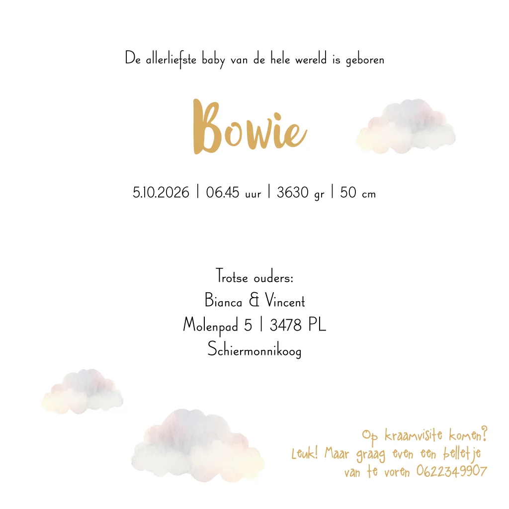 Unisex geboortekaartje met beertje sterretjes en wolk
