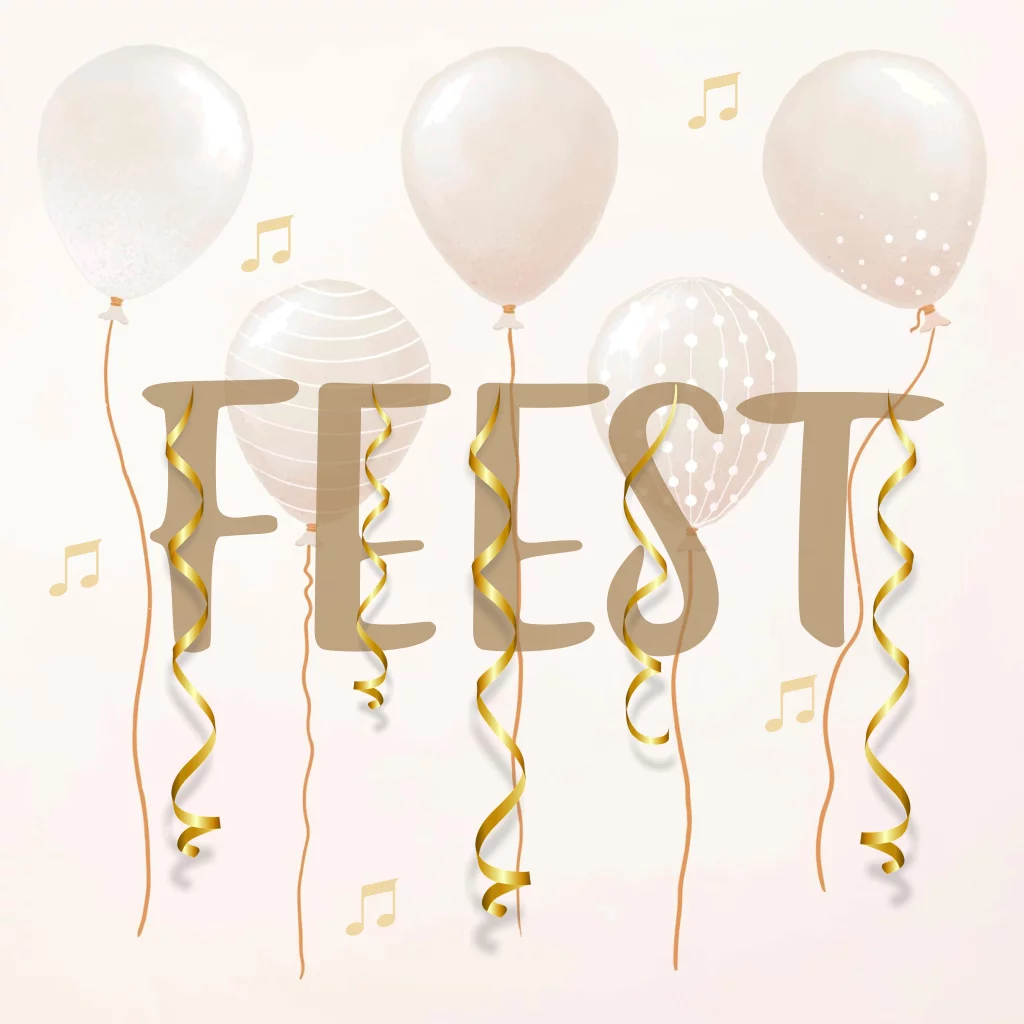 Uitnodiging voor een feest of verjaardag met ballonnen en muzieknoten