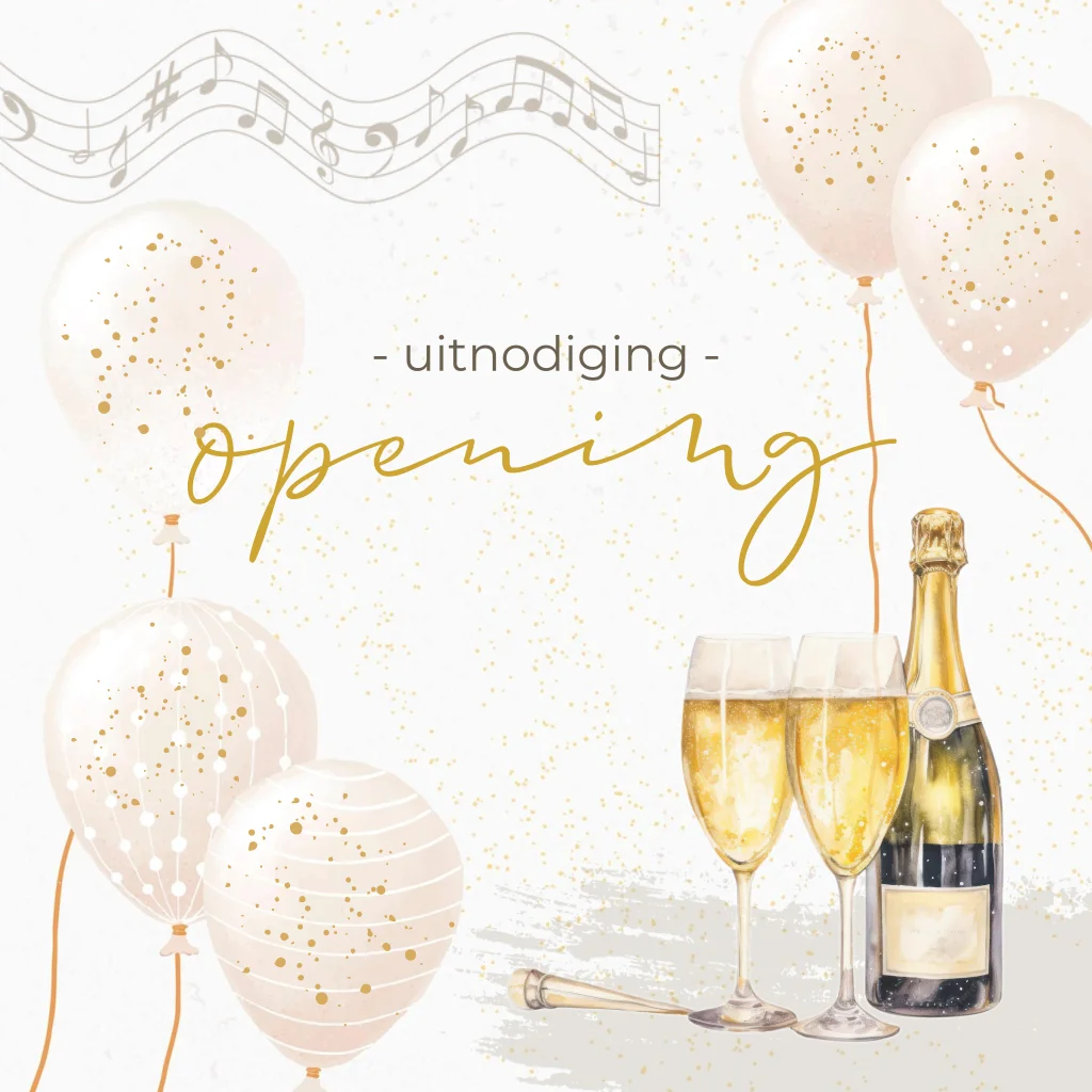 Uitnodiging voor een opening met ballonnen en champagne