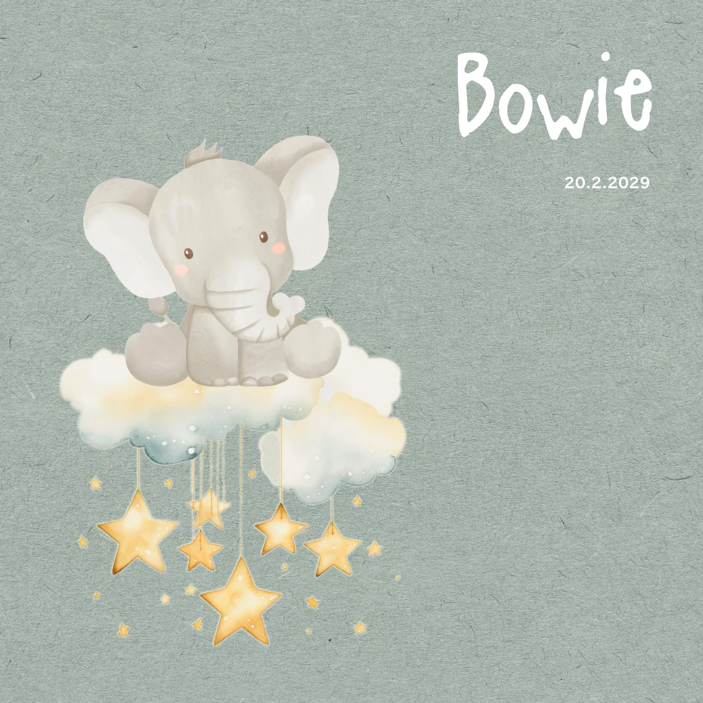 Lief neutraal geboortekaartje met olifant op wolkje