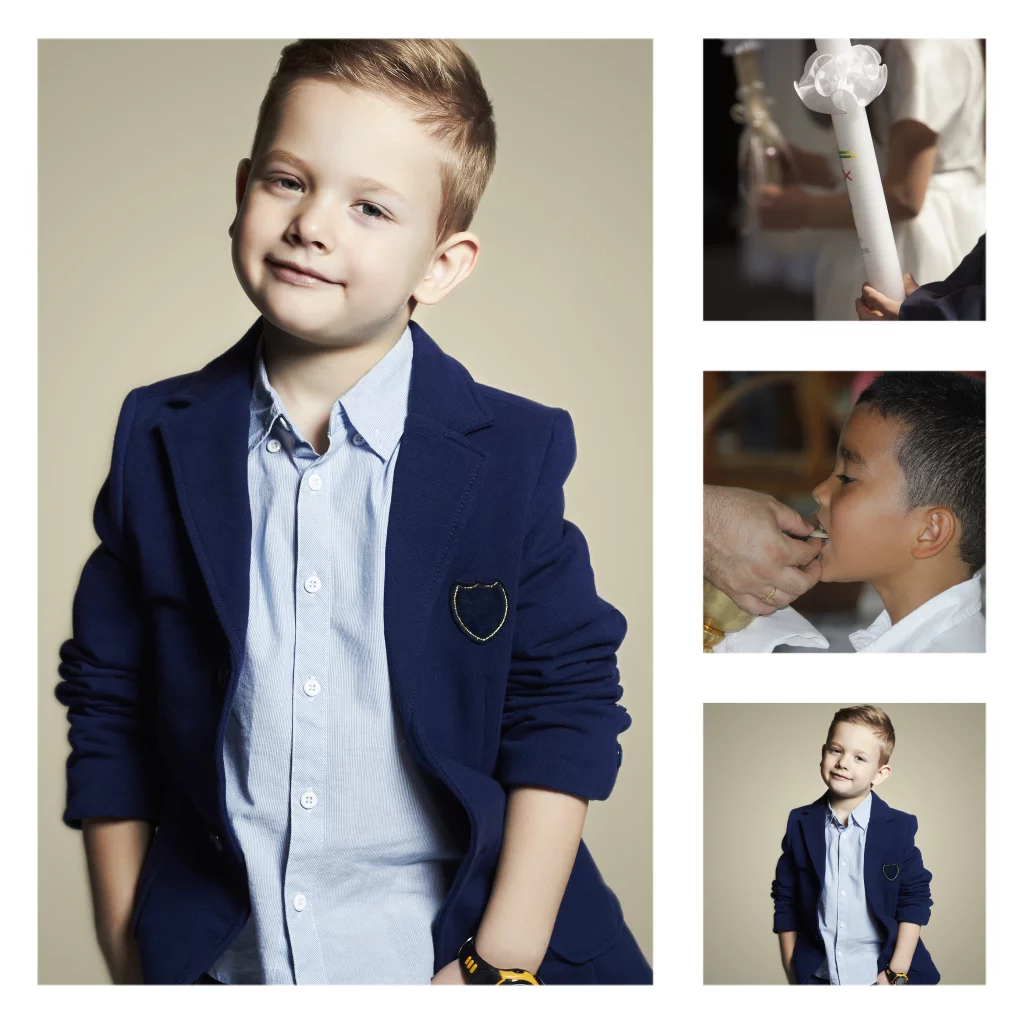 Moderne communie bedankkaart met foto's. (999999)