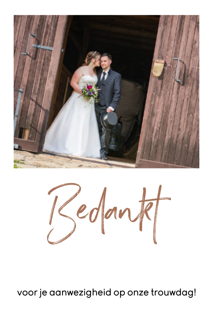 Bedankkaart voor na de bruiloft met een eigen foto