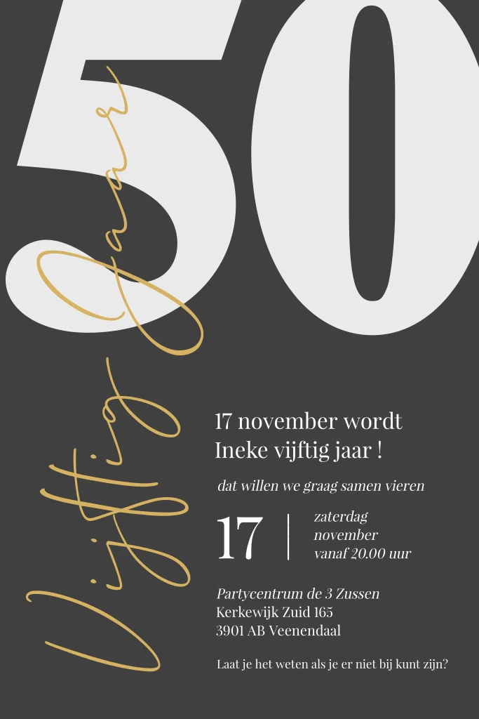 Chique uitnodiging 50 jaar verjaardag typografie