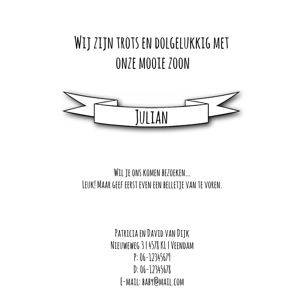 Foto geboortekaartje jongen met kroon en geboorte symbolen. (1813)