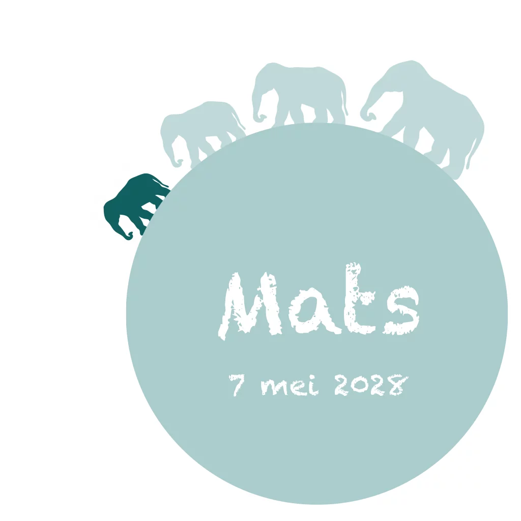 Hip en modern geboortekaartje jongen, tweede kindje. Met olifanten in de kleur groen (1886)