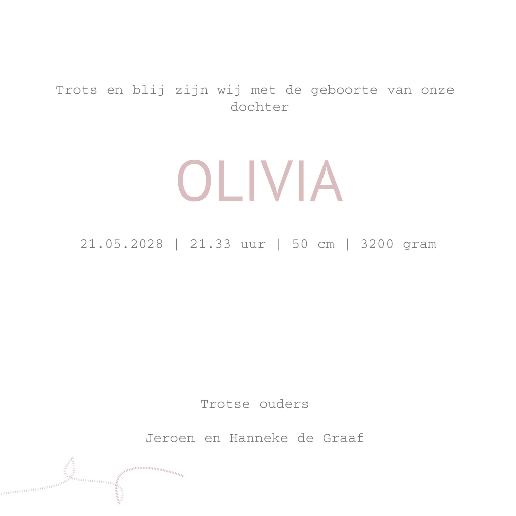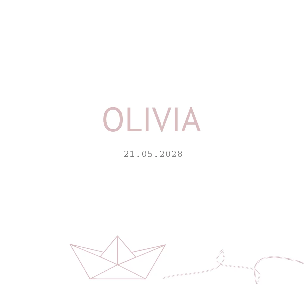 Eenvoudig geboortekaartje met een lijntekening van een bootje in oud roze kleur. (7335)