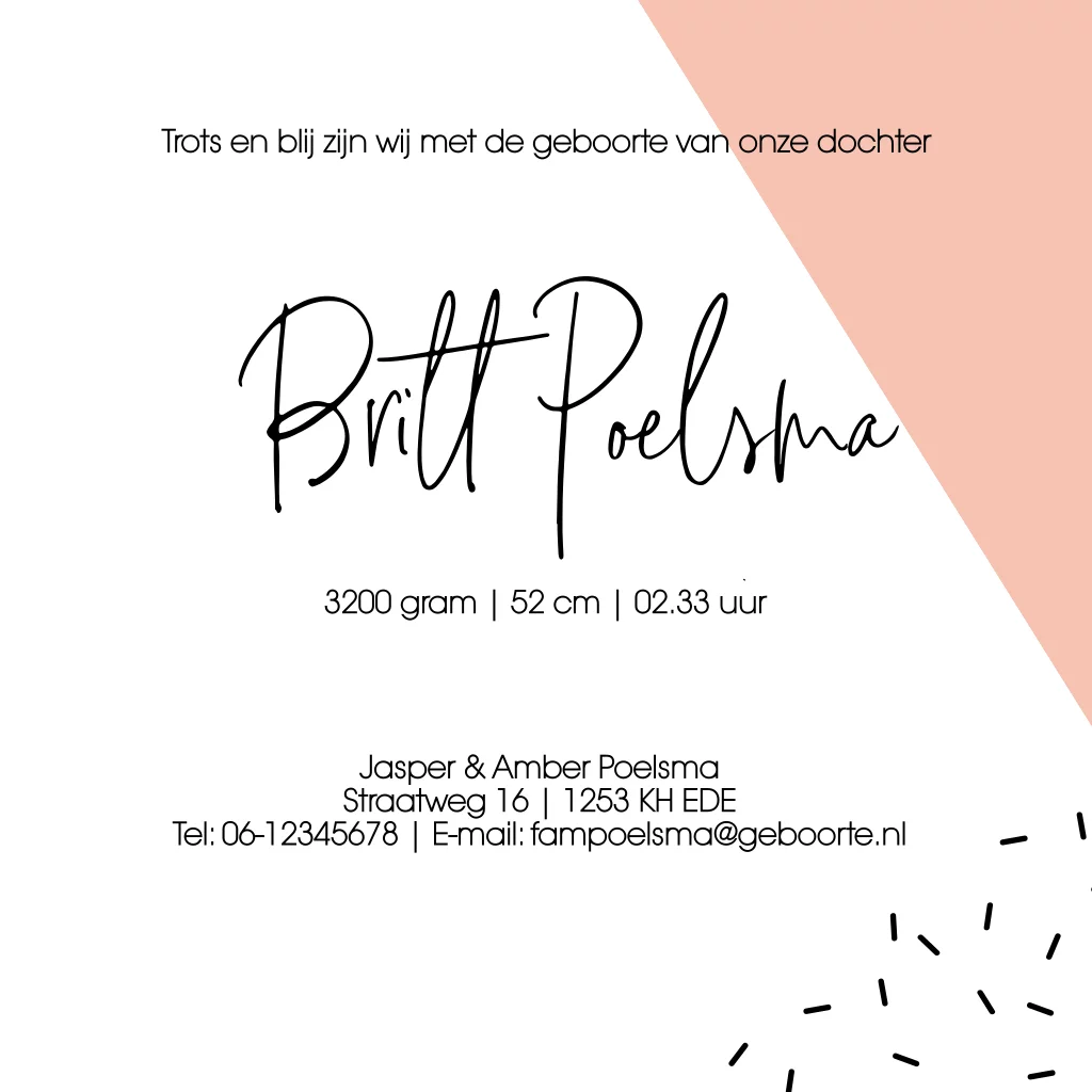 Geboortekaartje geometrische vormen kraft en peach