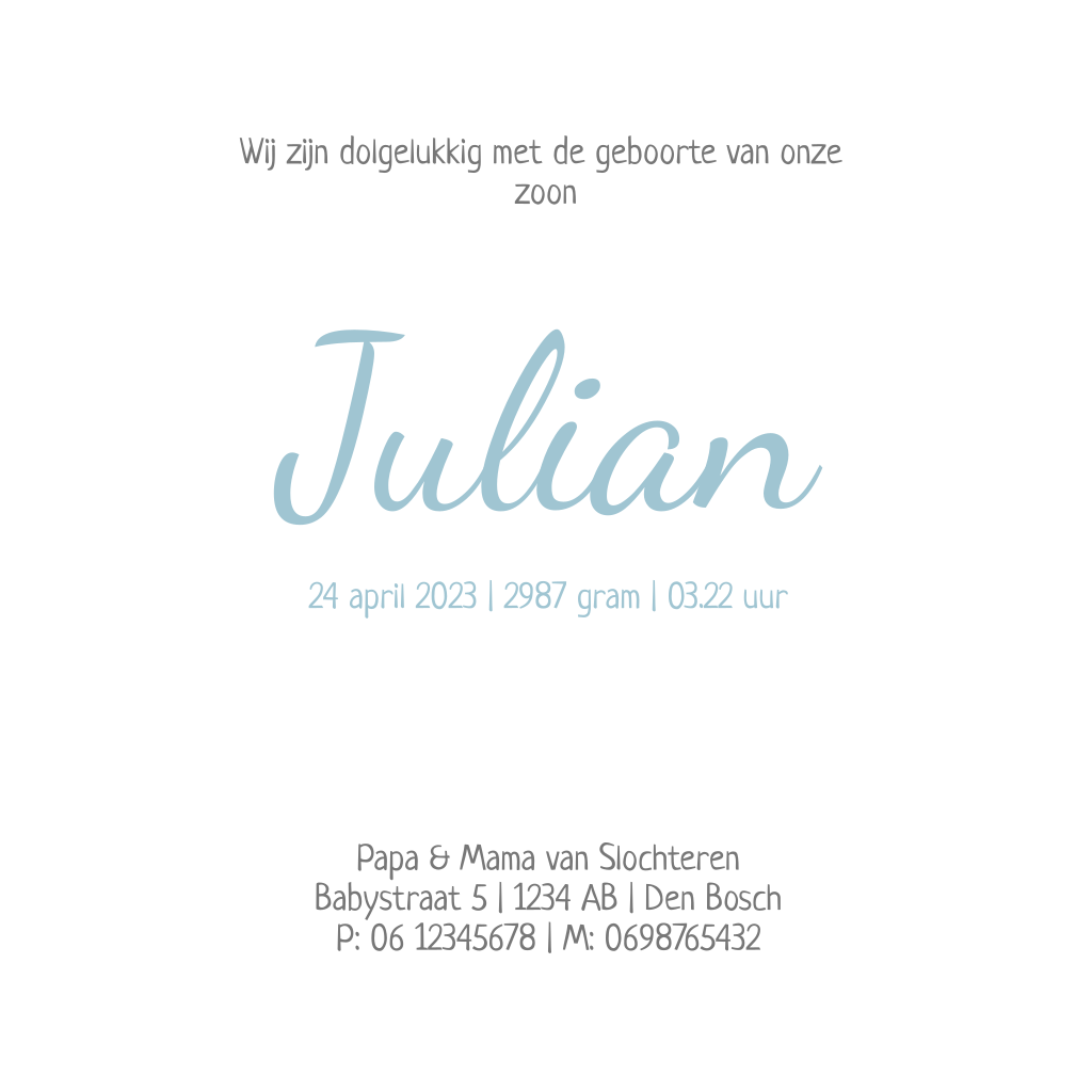 Klassiek geboortekaartje voor een jongen met baby voetjes. (4394)