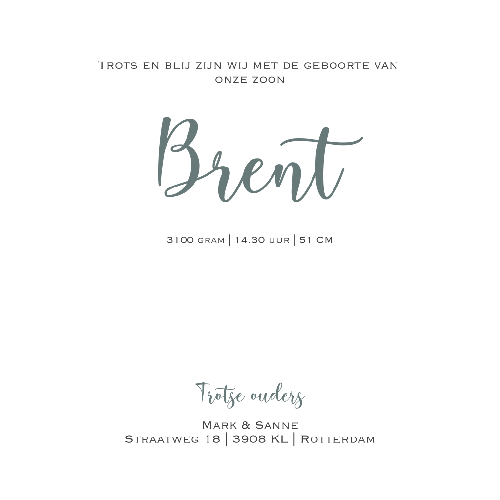 Geboortekaartje jongen Brent warme groene kleur en wereldkaart