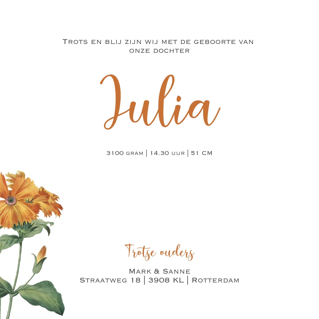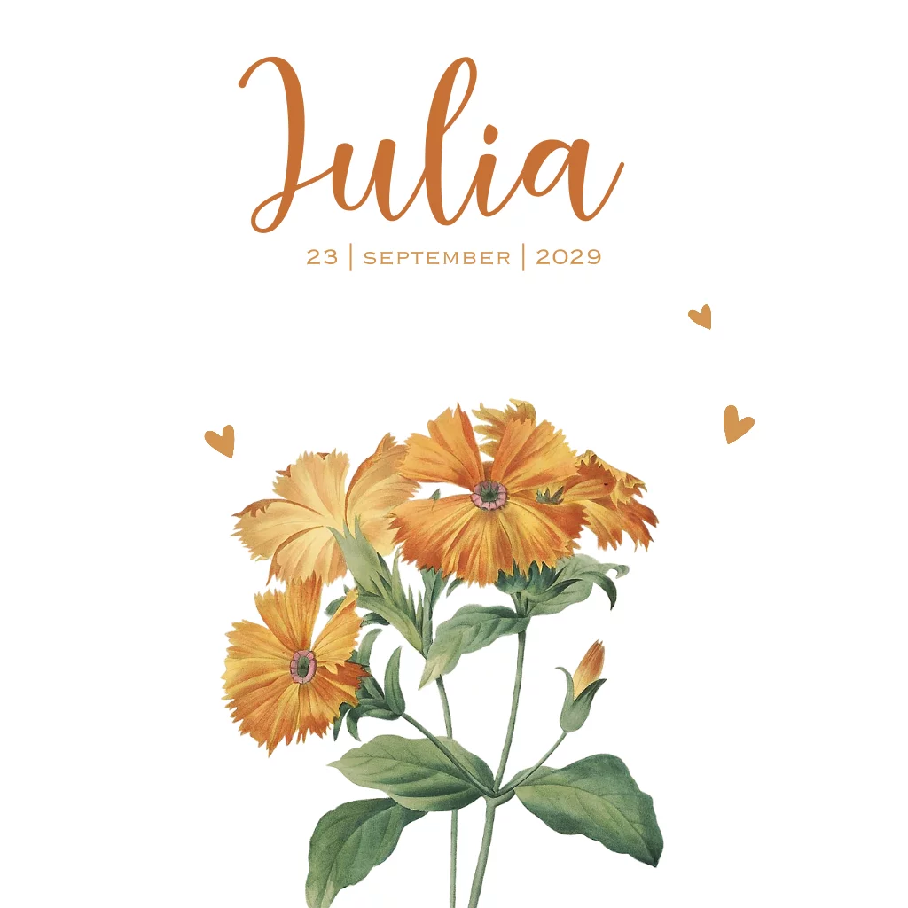 Geboortekaartje meisje met geboortebloem goudsbloem oktober