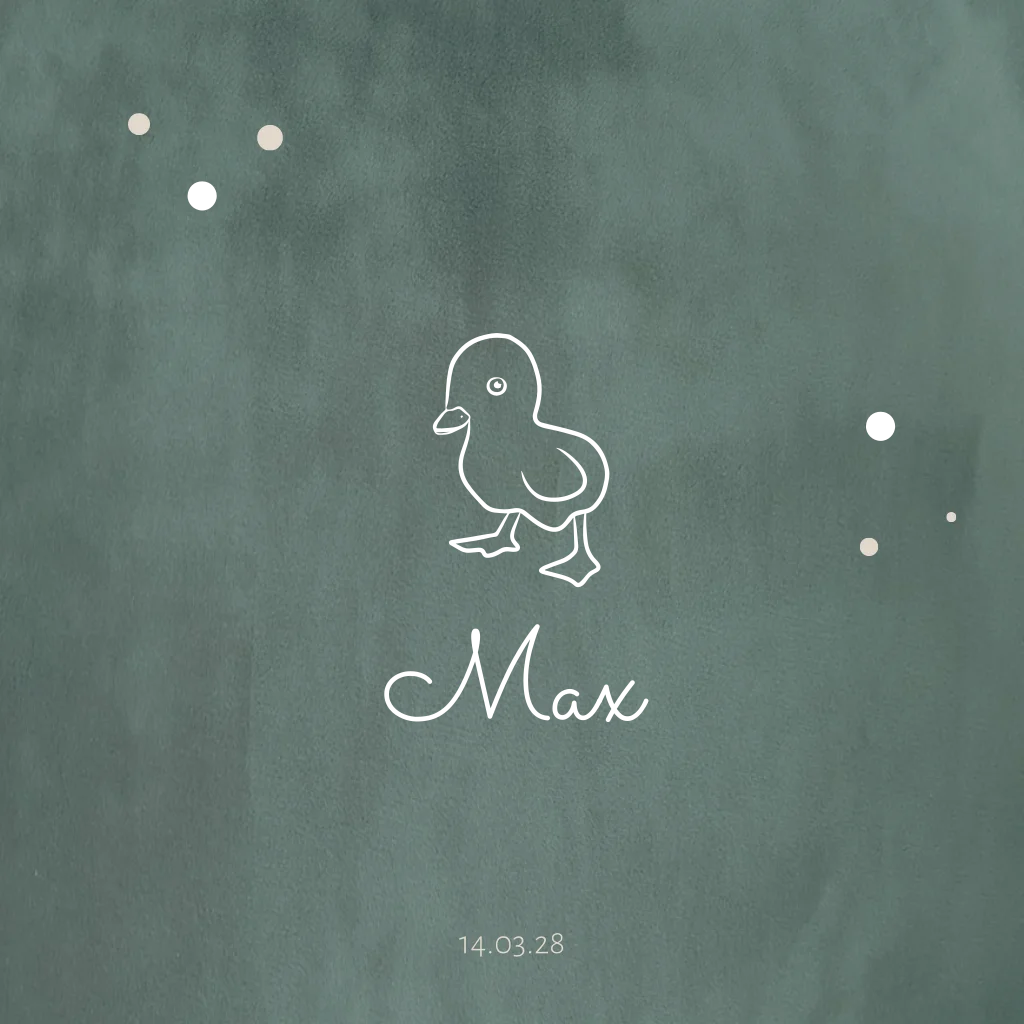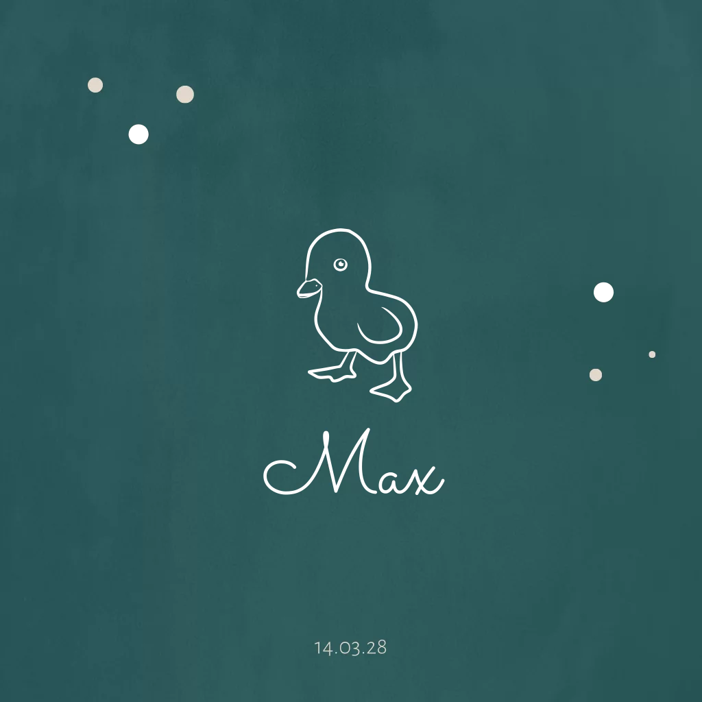 Geboortekaartje met een klein eendje in goudfolie. De kleuren kunnen naar wens aangepast worden. (23535)