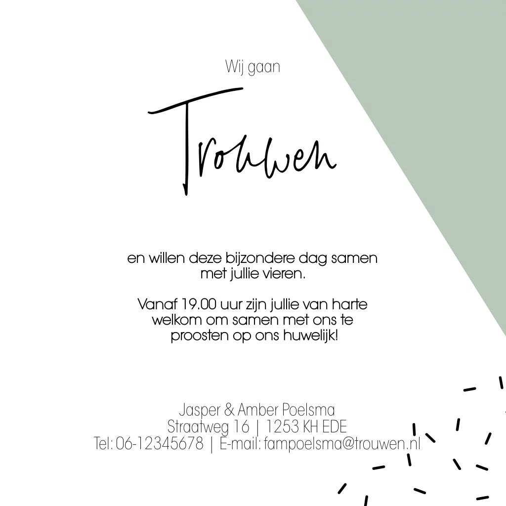 Geometrische trouwkaart met kraft en mint groene kleur. (8540)