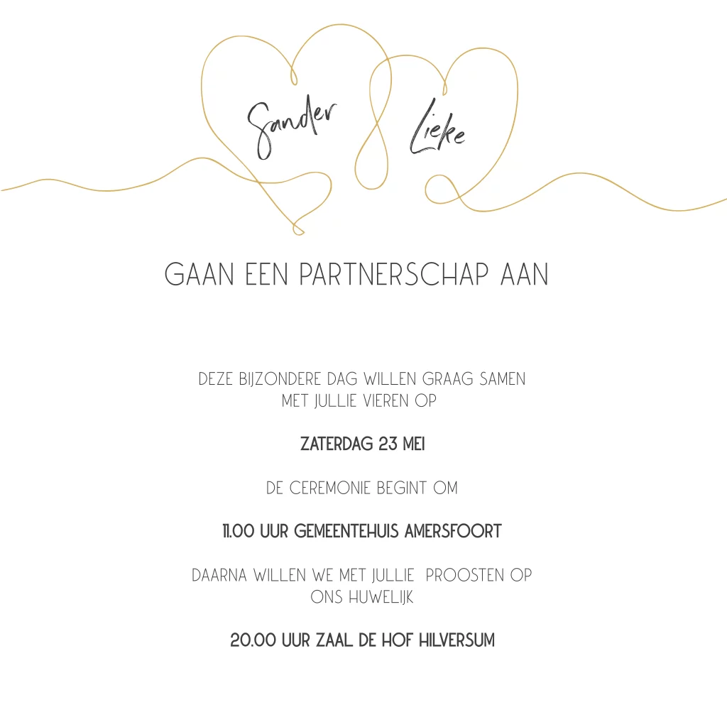 Geregistreerd partnerschap Uitnodigingskaart clean met 2 harten
